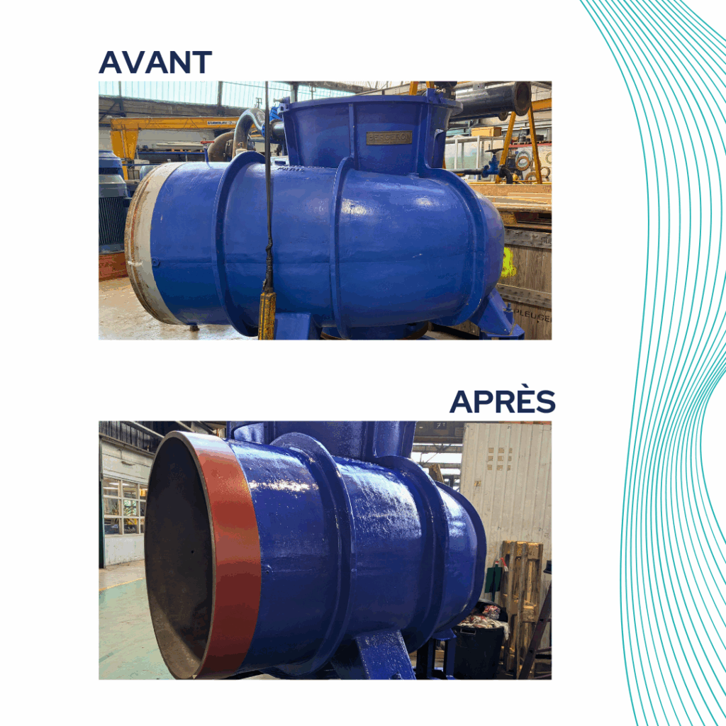 - Usinage de l’hélice et remplacement de la bague d’usure afin de retrouver les performances d’origine