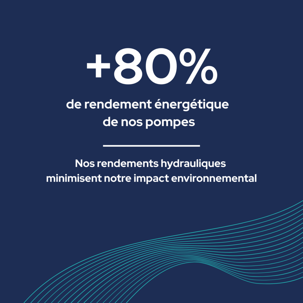 - +80% de rendement énergétique de toutes nos pompes : moins d’impact environnemental