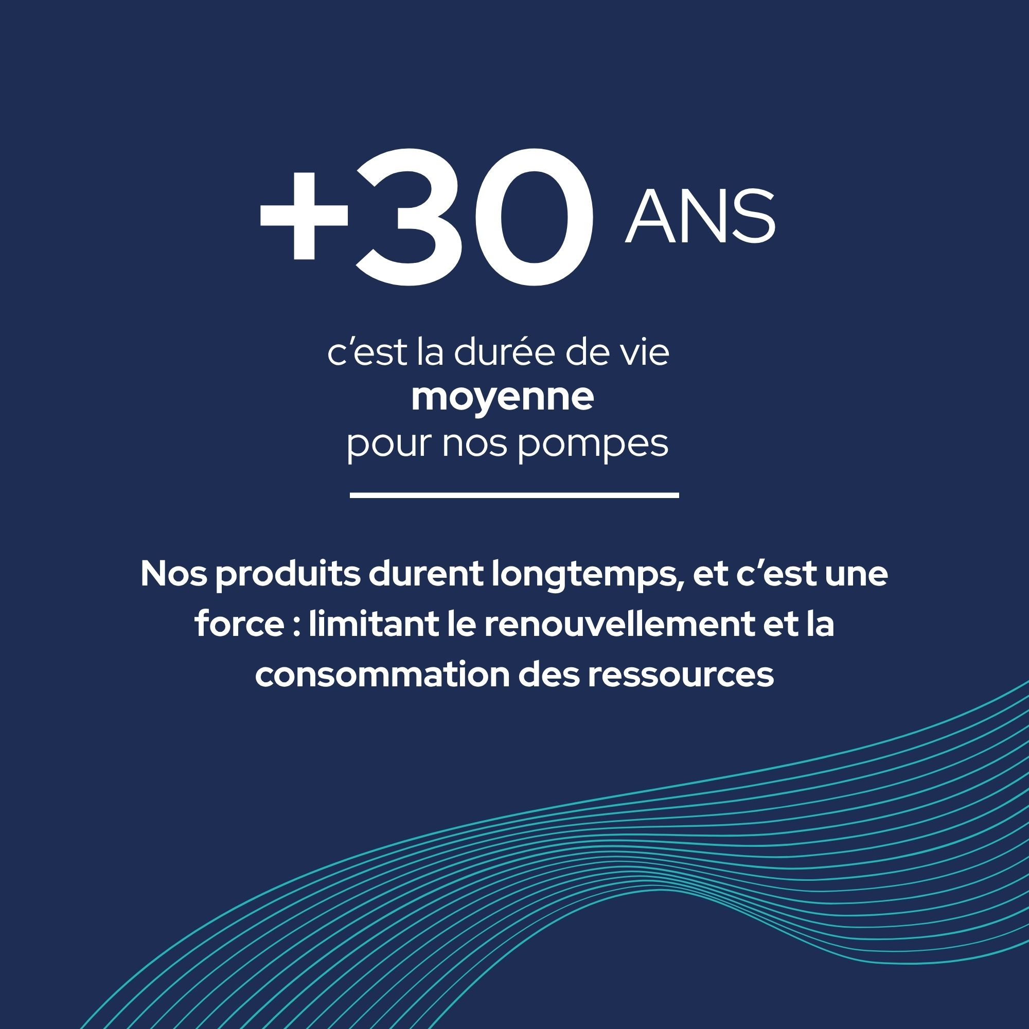 - Plus de 30 ans de durée de vie moyenne pour nos pompes